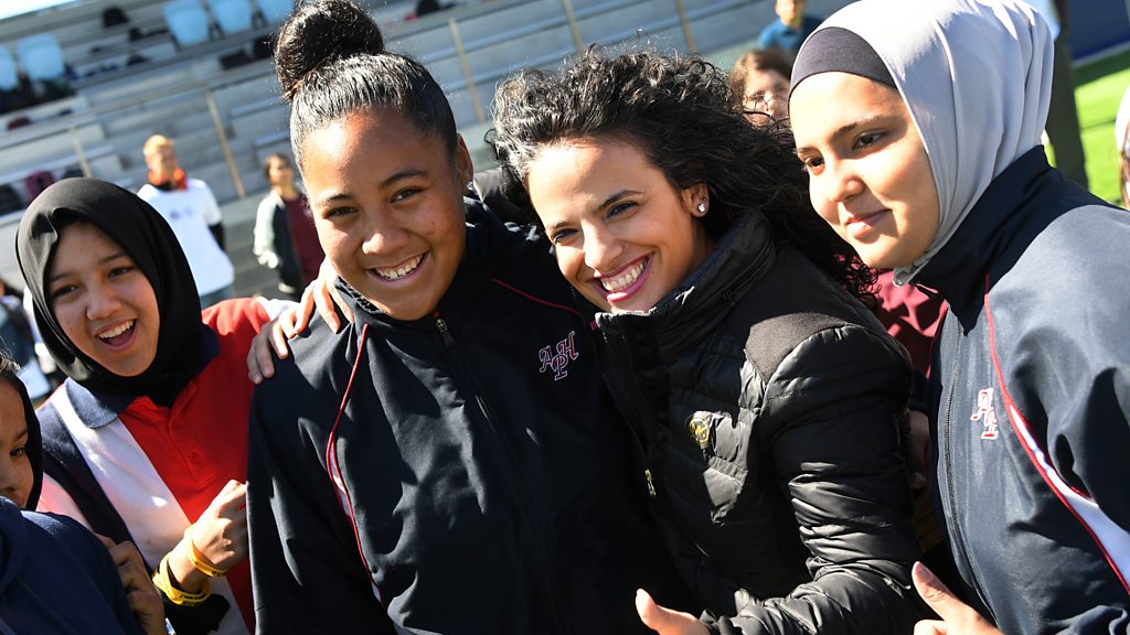 To mark International Women’s Day, Sporting Witness has the story of the founding of the Palestinian women’s football team, who played their first international match in 2005. Many of the players had to overcome hostility from male relatives, as well as the difficulties of day-to-day survival in the occupied West Bank. The Palestinian captain, Honey Thaljieh, talks to Charlotte North about how she found a sense of liberation through sport. PHOTO: Honey Thaljieh, second right, on a visit to Australia in 2017 (Getty Images)