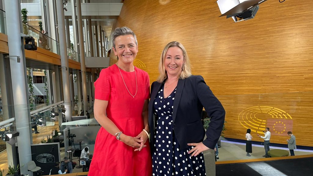 This week Zoe Kleinman travels to Strasbourg, France to meet Margrethe Vestager, the woman leading the EU's attempts to regulate AI. Reporter Tom Gerken has been following the protest has caused Reddit to effectively fall silent. Chris Vallance meets the team trying out 3D printing as a way to rebuild schools destroyed in the war in the Ukraine. And Amazon tell us what they're doing to combat fake online reviews - and we ask a consumer group to review their initiative. (PHOTO: Margrethe Vestager and Zoe Kleinman at the European parliament, Strasbourg, France, copyright BBC).