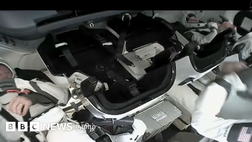 படக்குறிப்பு, ஸ்பேஸ் எக்ஸ் டிராகன் விண்கலத்தில் தயாராகும் குழுவினர்