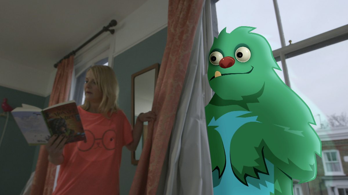 SARAH HADLAND:It's brilliant. When I started this book, I imagined Nelly would be terrified! Ooh, thank you… SHE SCREAMS But in fact, every time she goes monster-sitting, she has an amazing adventure. I mean, the monsters may be green, prickly, fuzzy, purple, massive, hairy, ugly and squelchy.