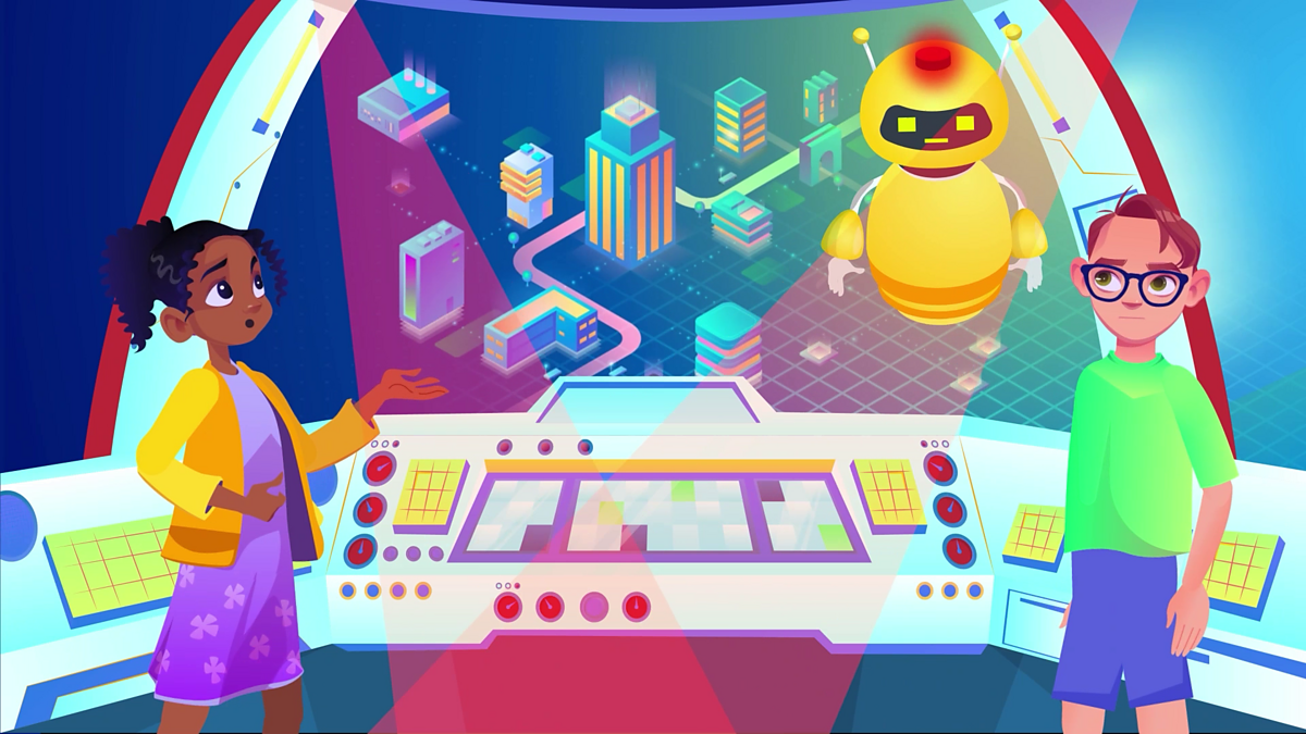 [ALARM BLARES]ZACH: Uh-oh, I think there’s something wrong with our virtual city, Kayla.