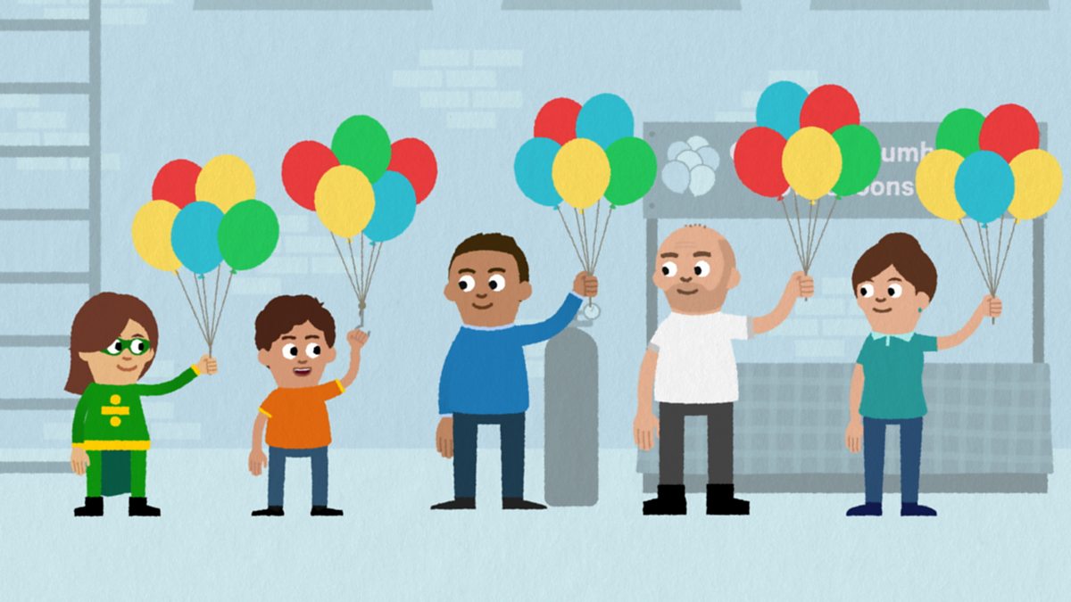 Divider Girl can you help? We need to share out Charlie’s balloons evenly, so we can get him off the ceiling.