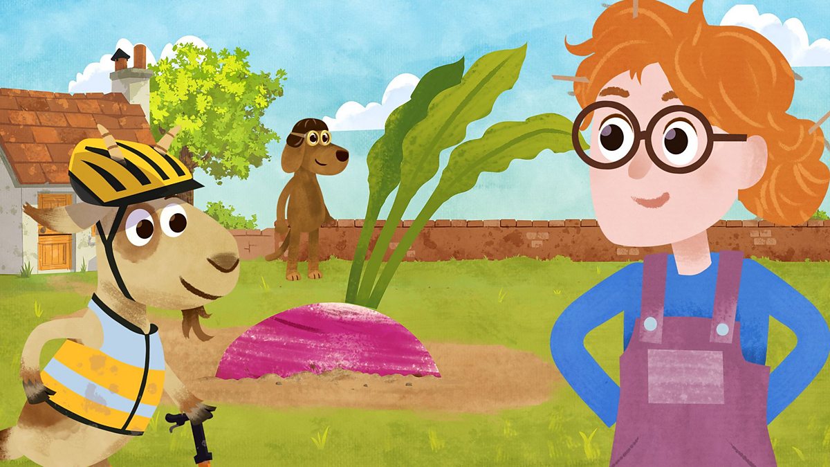 Sean: Together we're going to tell the musical story of the Enormous Turnip.Once upon a time, there lived a farmer and her daughter.Every year, they entered the biggest vegetable competition at the village fair.They dreamt of winning first prize.But their vegetables were never big enough.When spring came, they opened their seed box.All that was left was a wrinkly turnip seed.The farmer and her daughter were determined to help the turnip seed grow.They planted it in the soil in the sunniest spot on the farm.They watered it every day. They read it stories.They even sang it songs.