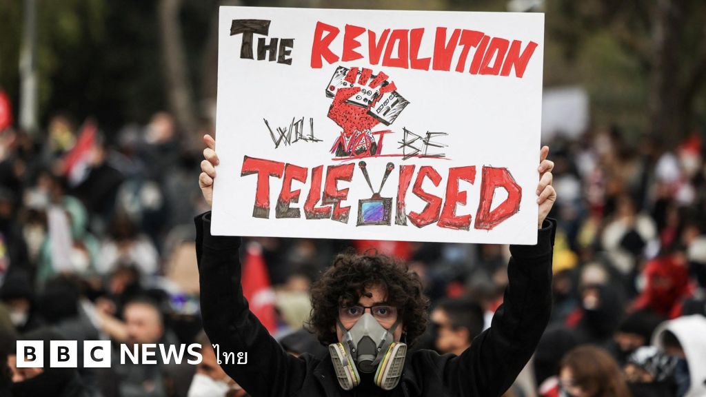 คำบรรยายภาพ, ความเงียบของสื่อในการชุมนุมประท้วงครั้งใหญ่ที่นครอิสตันบูล สะท้อนการปิดกั้นที่พบเห็นได้ในช่วงกว่าทศวรรษที่แล้วระหว่างการชุมนุมประท้วงที่สวนสาธารณะเกซี (Gezi Park)