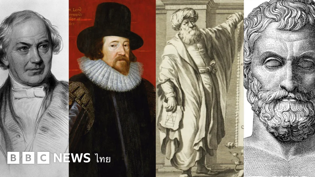 คำบรรยายภาพ, (จากซ้ายไปขวา) วิลเลียม ฮิวเอล, ฟรานซิส เบคอน, ฮาซัน อิบิน อัล-ไฮทัม, เธลีสแห่งมิเลทัส