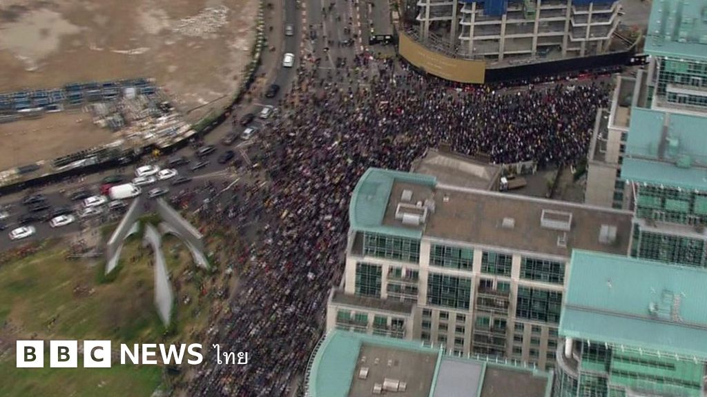 ภาพถ่ายทางอากาศแบบเร่งความเร็วของขบวนกลุ่มผู้ประท้วงต่อต้านการเหยียดเชื้อชาติในลอนดอน