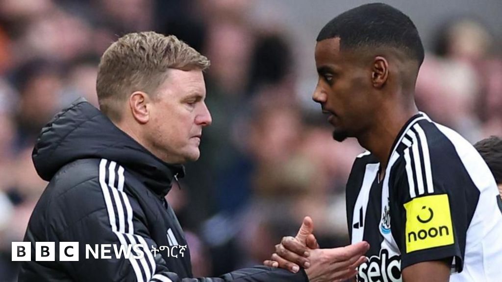 ኣሰልጣኒ ኒውካስል ኤዲ ሃውን ኣሌክሳንደር ኢሳቕን ኣብ ሜዳ ሰላም እናተበሃሃሉ