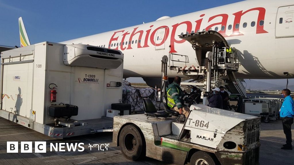 ብመንገዲ ዓለማዊ ተበግሶ ፕሮግራም ኮቫክስ ንኢትዮጵያ ዝተዓደለ 2.2 ሚልዮን ብልቃጥ ከታበት ጸረ ኮቪድ-19፡ ሎሚ ኣብ ሰዓታት ናይ ንግሆ ናብ ዓለምለኻዊ መዓርፊ ነፈርቲ ቦሌ ኣትዩ።