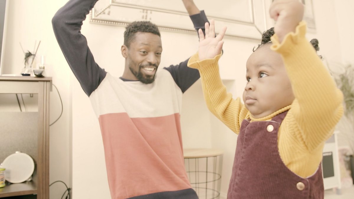 Fill a large container with water and toys and take it in turn to share the toys and splash the water and call out the sounds that you can hear.