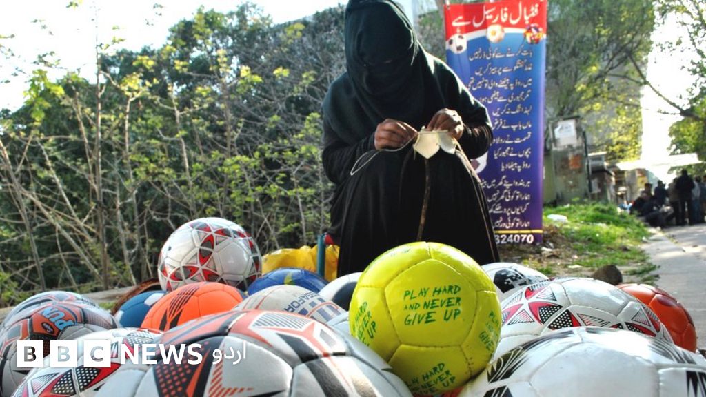 ہاتھ سے فٹ بال بنا کر اپنے گھرانے کا پیٹ پالنے والی خاتون