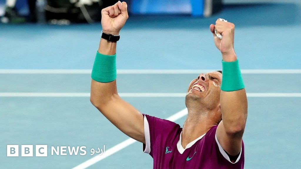 Rafael Nadal celebrates 2022 Australian Open win