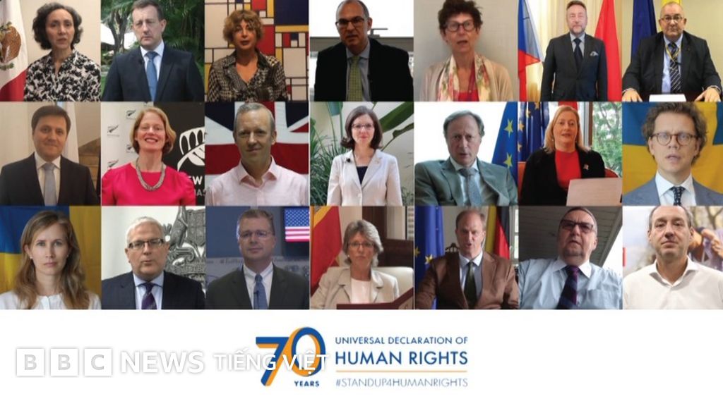 21 đại sứ và phó đại sứ nước ngoài tại Việt Nam đọc bản tuyên ngôn nhân quyền vào ngày Nhân quyền Quốc tế hôm 10/12/2018.