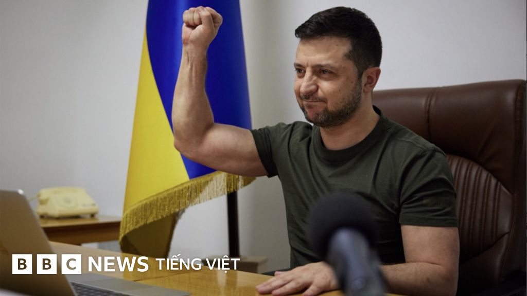 Ông ấy nói bằng tiếng Ukraine, và tránh xa những bộ đồ chau chuốt thường gắn với quang cảnh chính trị như này. Đó là một sự thay đổi phi thường với một chính trị gia có tỷ lệ chấp thuận đã giảm trong nhiều tháng trước khi cuộc chiến tranh nổ ra.