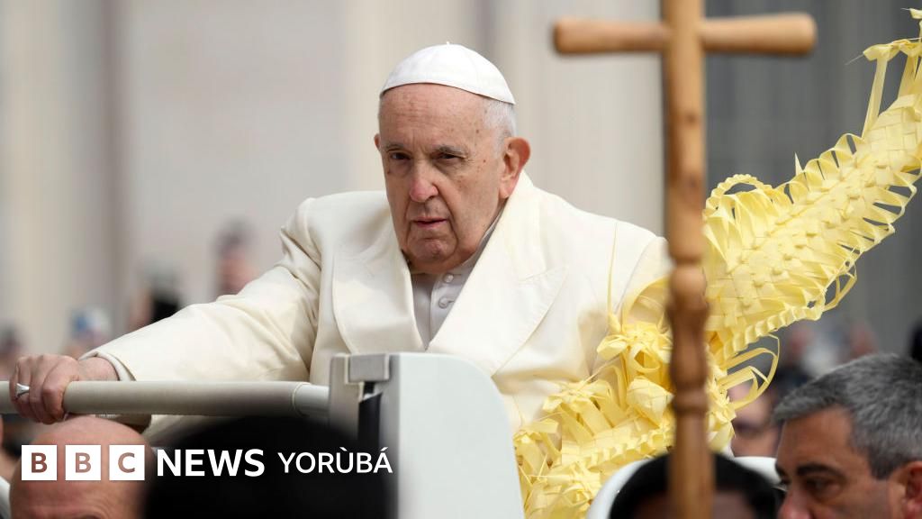 Irisi Poopu ẹni ọdun mẹrindinlaadọrun naa jo pe ko fibẹẹ rẹrin gẹgẹ bo se n tẹle ọwọọwọ awọn to n wọde ni St Peter’s Square lara awọn ti awọn alufa Cardinal to wọ asọ pupa ti gbe imọ ọpe nla nla ati oniruuru eka igi Olifi dani.