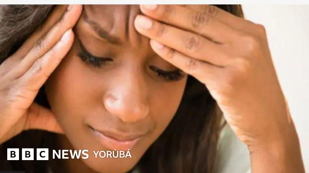 Àwòrán obinrin to fọwọ di ori mu pẹlu ironu