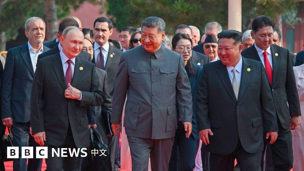北京天安門廣場9月3日舉行「抗戰勝利日」閱兵儀式,中國、俄羅斯、朝鮮三國領導人罕見同台,上一次這樣的畫面是70多年前的朝鮮戰爭。
